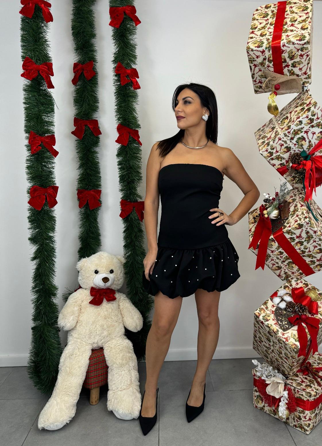 Mini Dress Lumina con Rouge sul fondo e applicazioni di diamantini, taglie S-M-L.