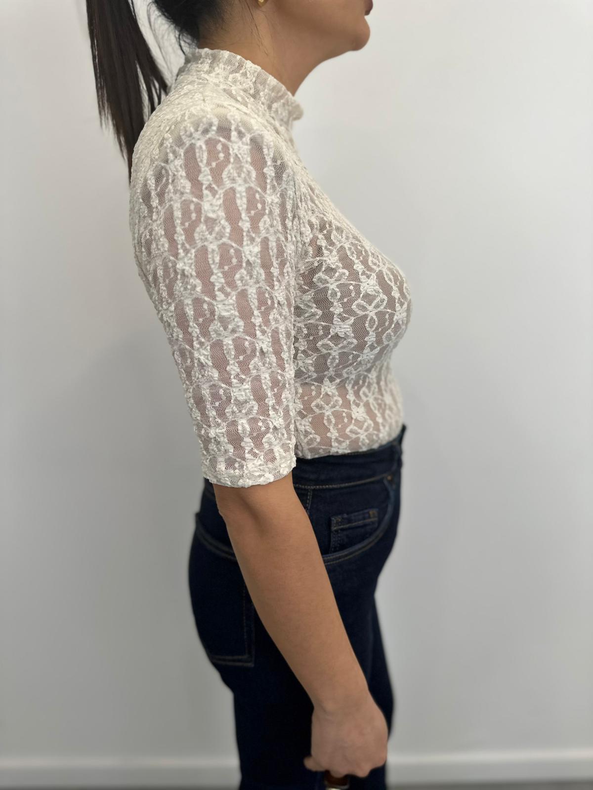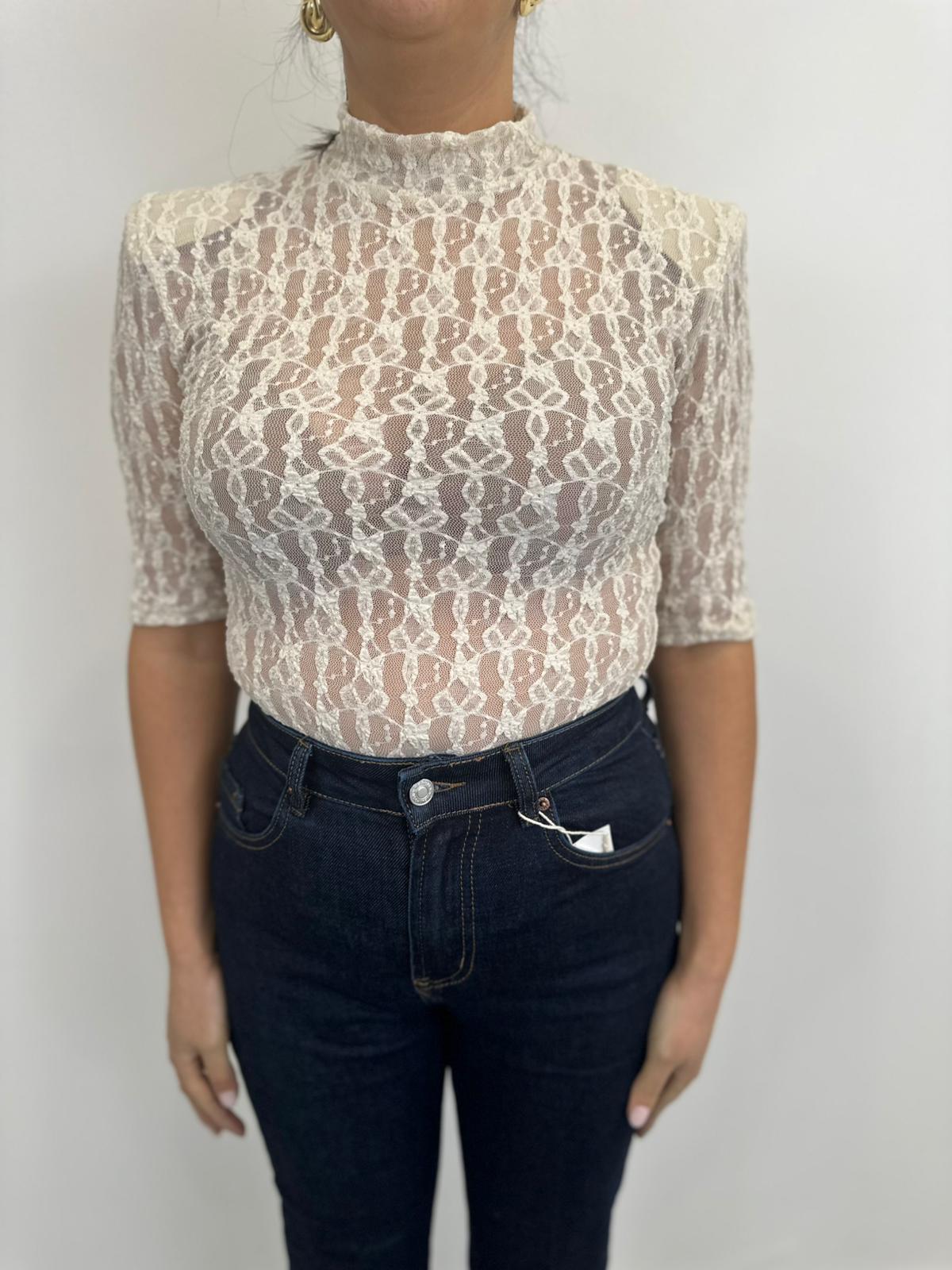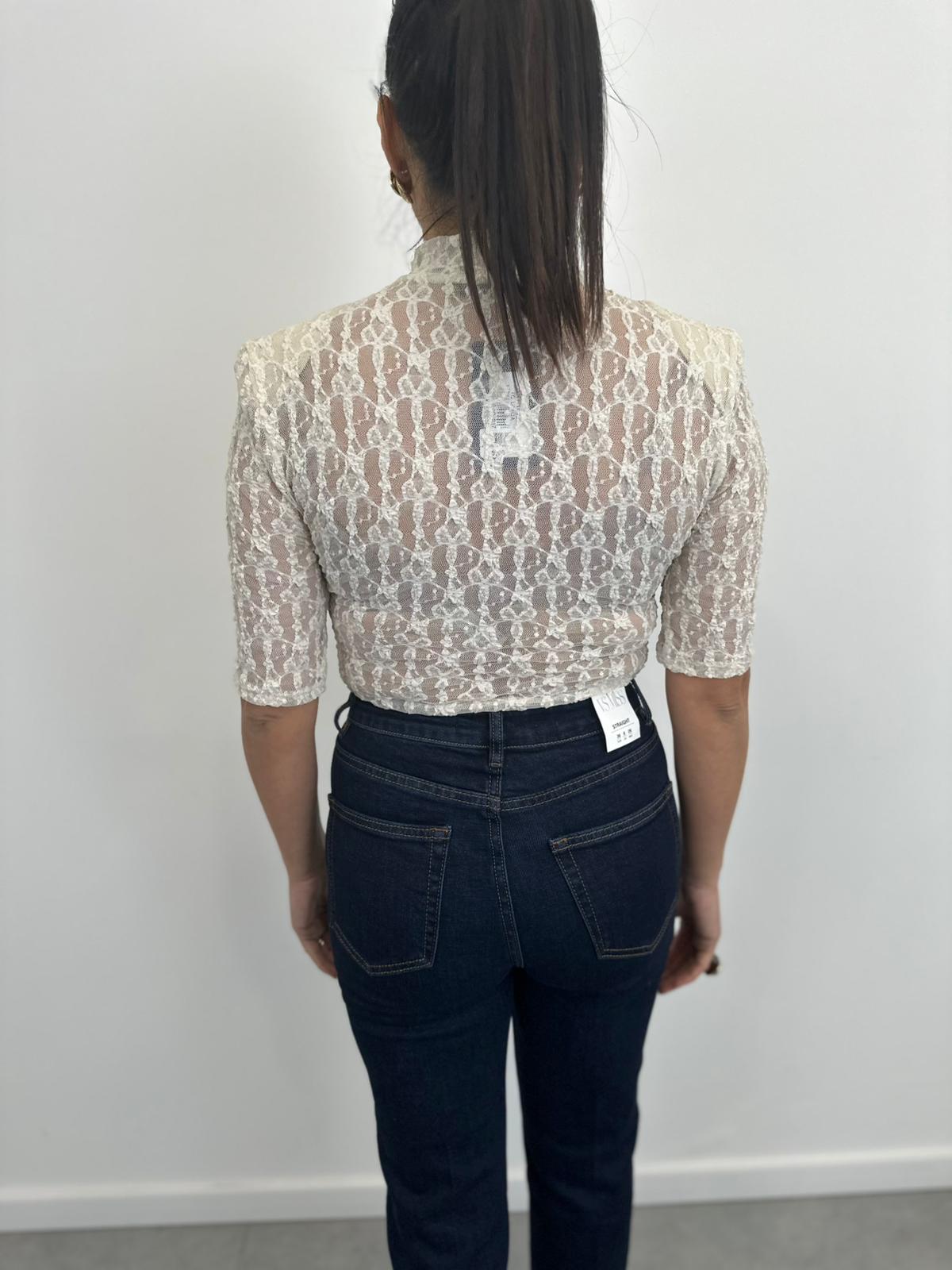 Body manica corta in pizzo con spalline, taglia unica.