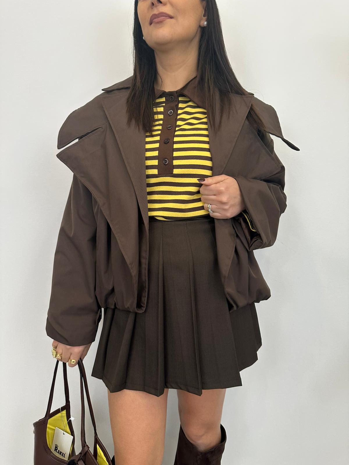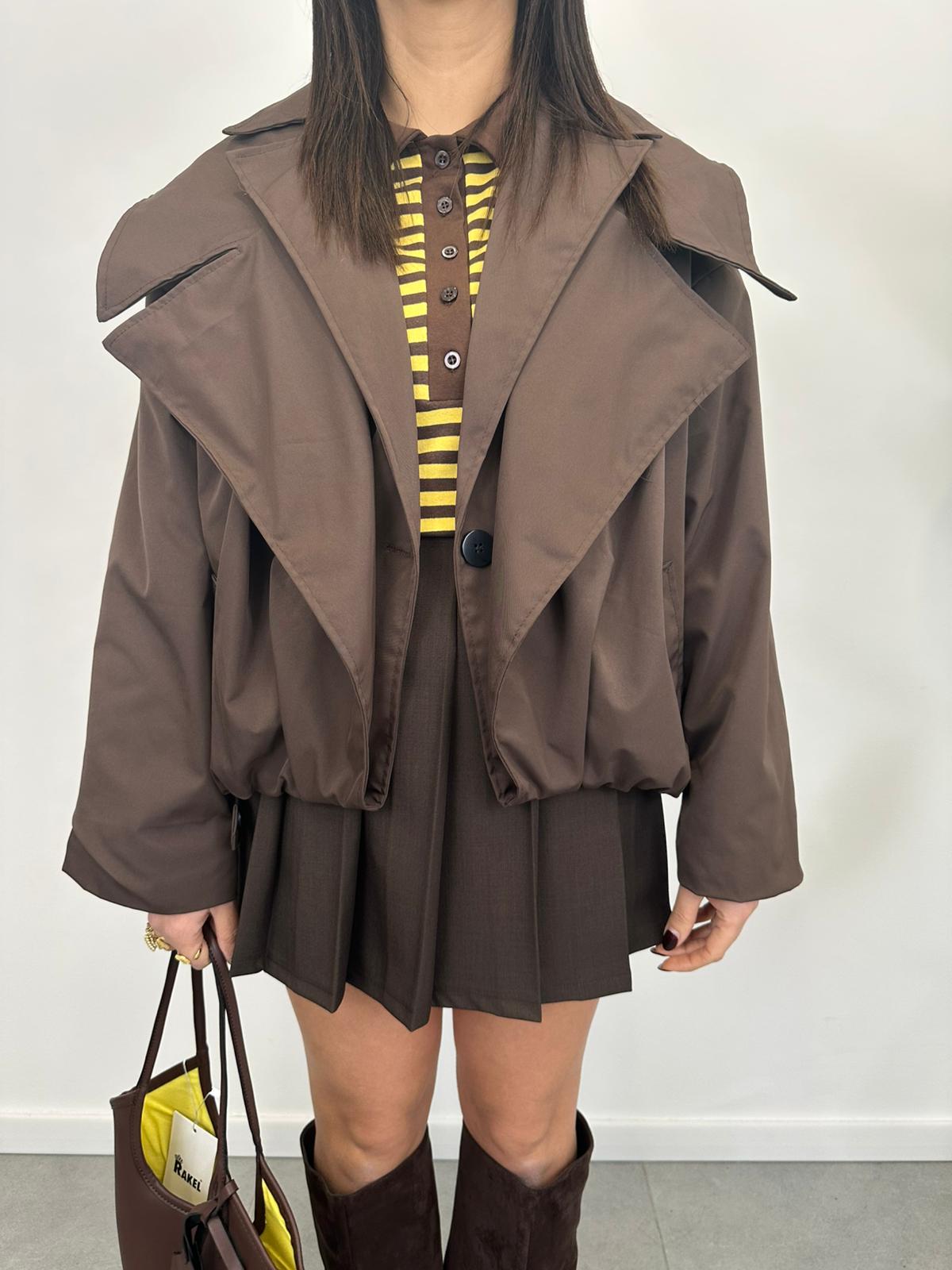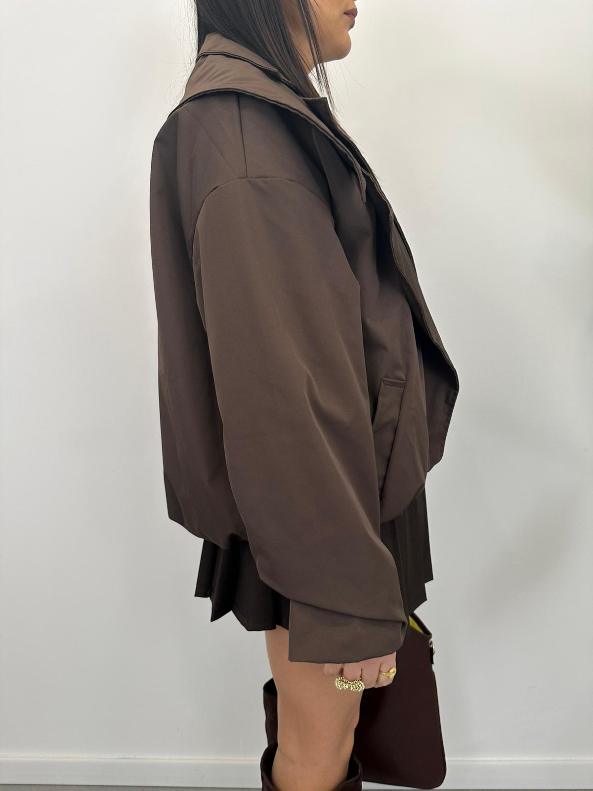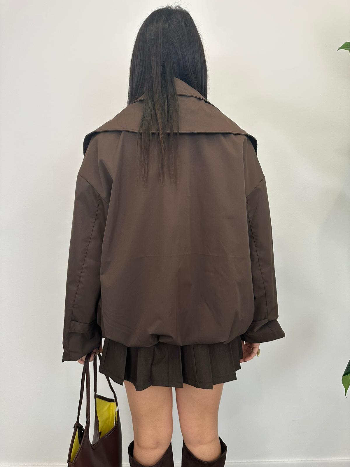 Giacca modello trench bomber combina l’eleganza classica del trench con lo stile sportivo del bomber,vestibilità è leggermente oversize. La taglia unica permette di adattarsi a diverse corporature, grazie a una linea leggermente ampia ma sagomata.
