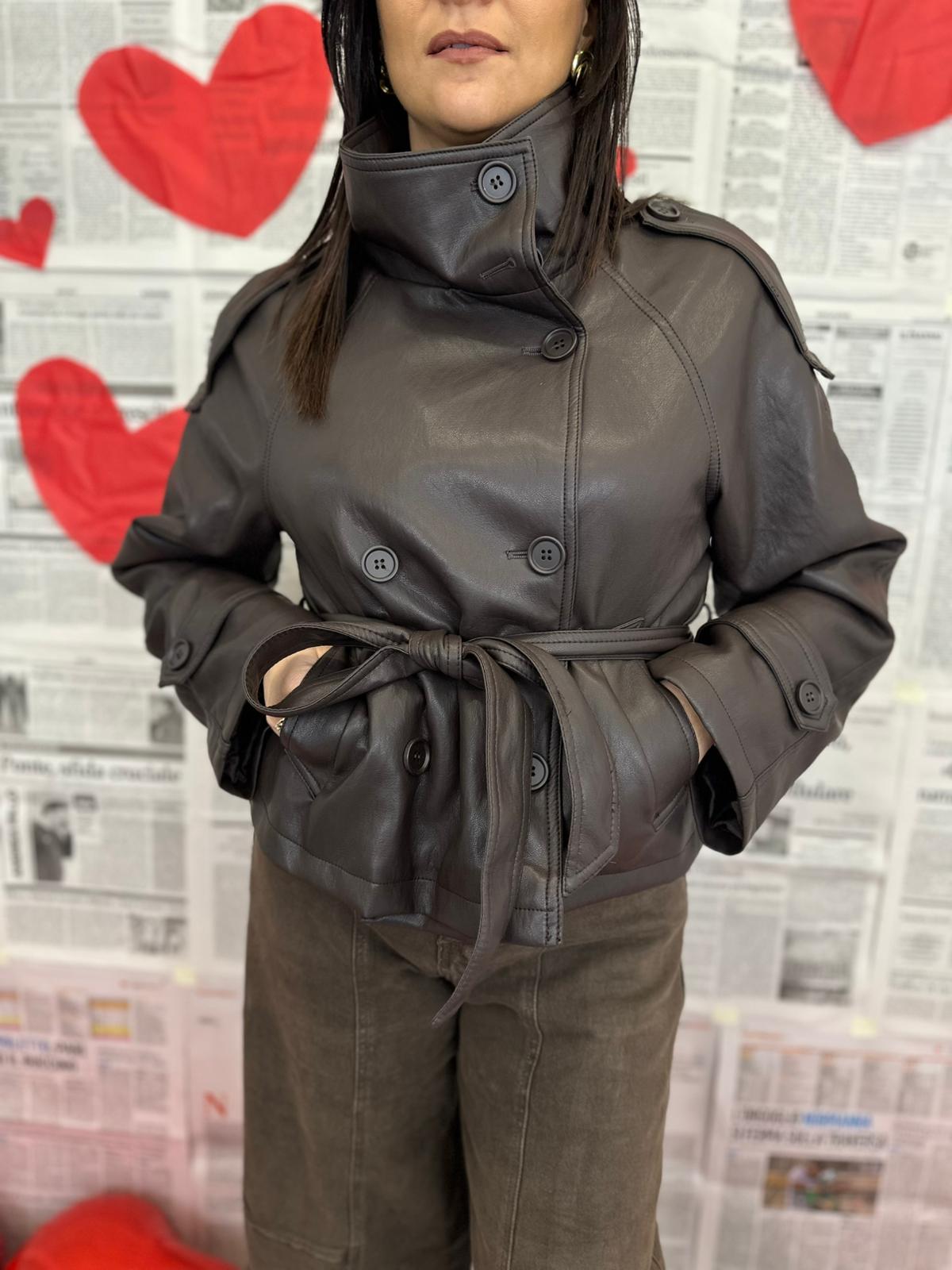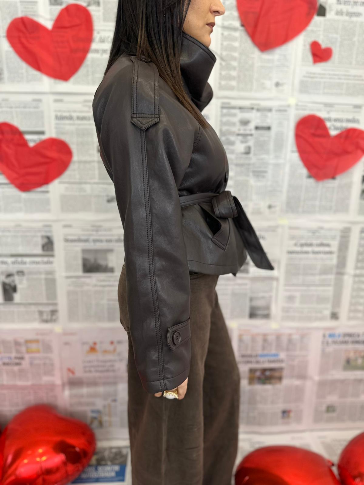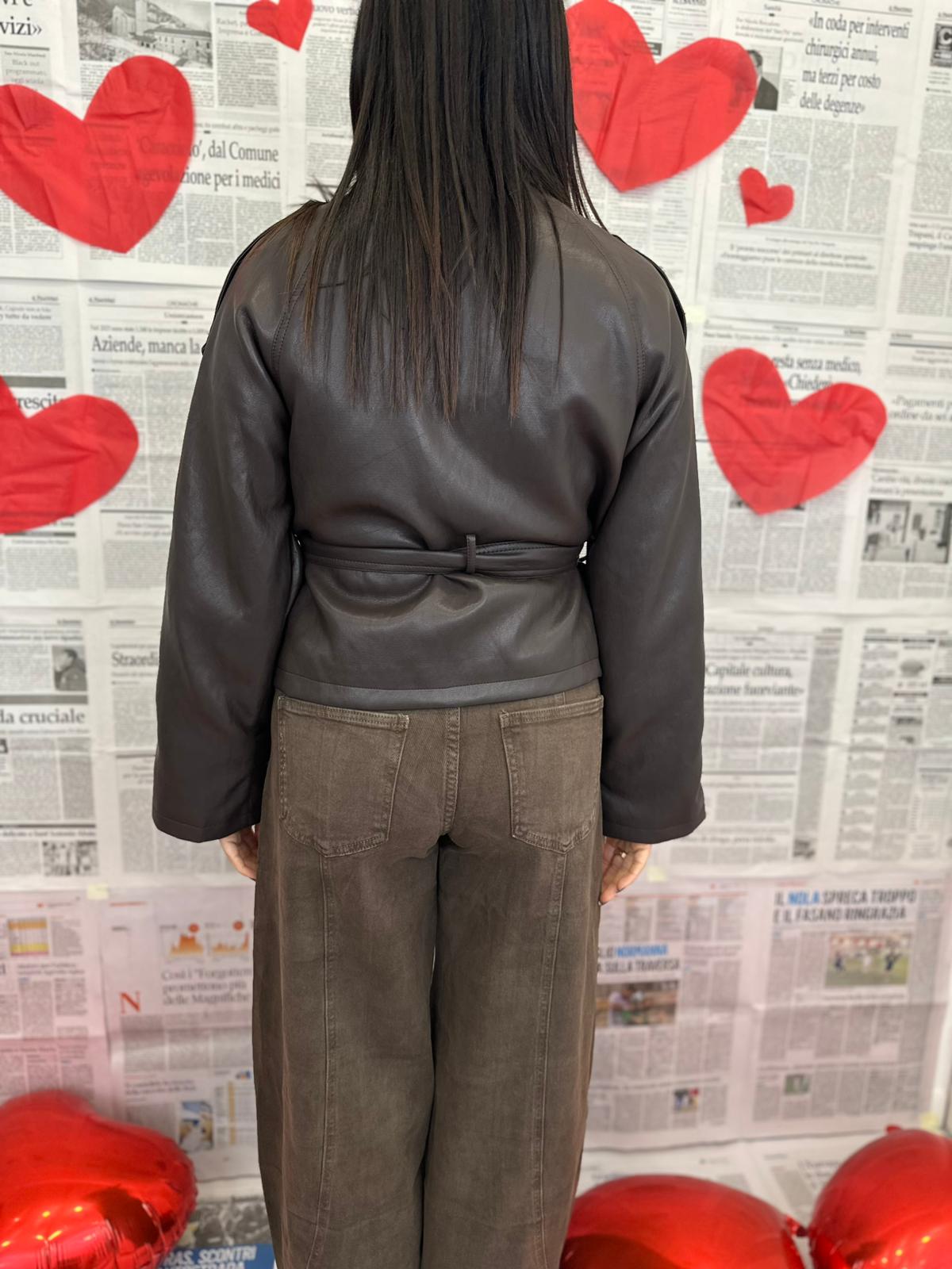 Biker dallo stile sportivo, con vestibilità morbida regolabile attraverso la sua cintura tono su tono. Taglie disponibili S-M ed M-L, Antonella è alta 1,60 ed indossa la sua solita taglia S-M.