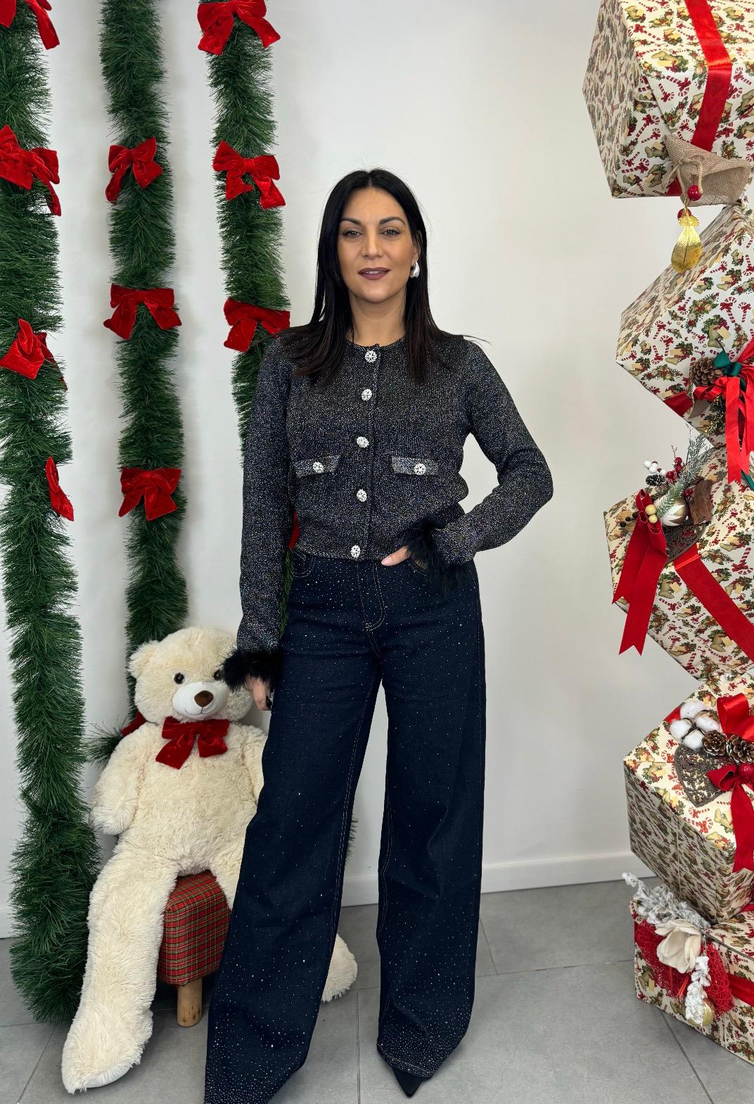 Il cardigan avvitato in tessuto 100% viscosa è un capo elegante e versatile, perfetto per aggiungere un tocco di raffinatezza al tuo look. Questa modello presenta un comodo girocollo che ne esalta la semplicità raffinata. Le piume sul polsino impreziosiscono il capo, donandogli un tocco di sofisticatezza, ideali per occasioni sia formali che casual chic. Disponibile in tre varianti colore puoi scegliere quella più adatta al tuo stile e alle tue esigenze, per un look sempre elegante e alla moda.