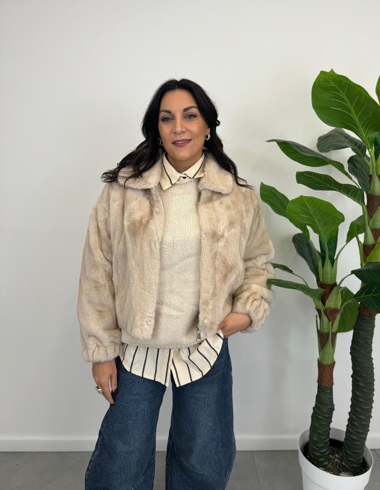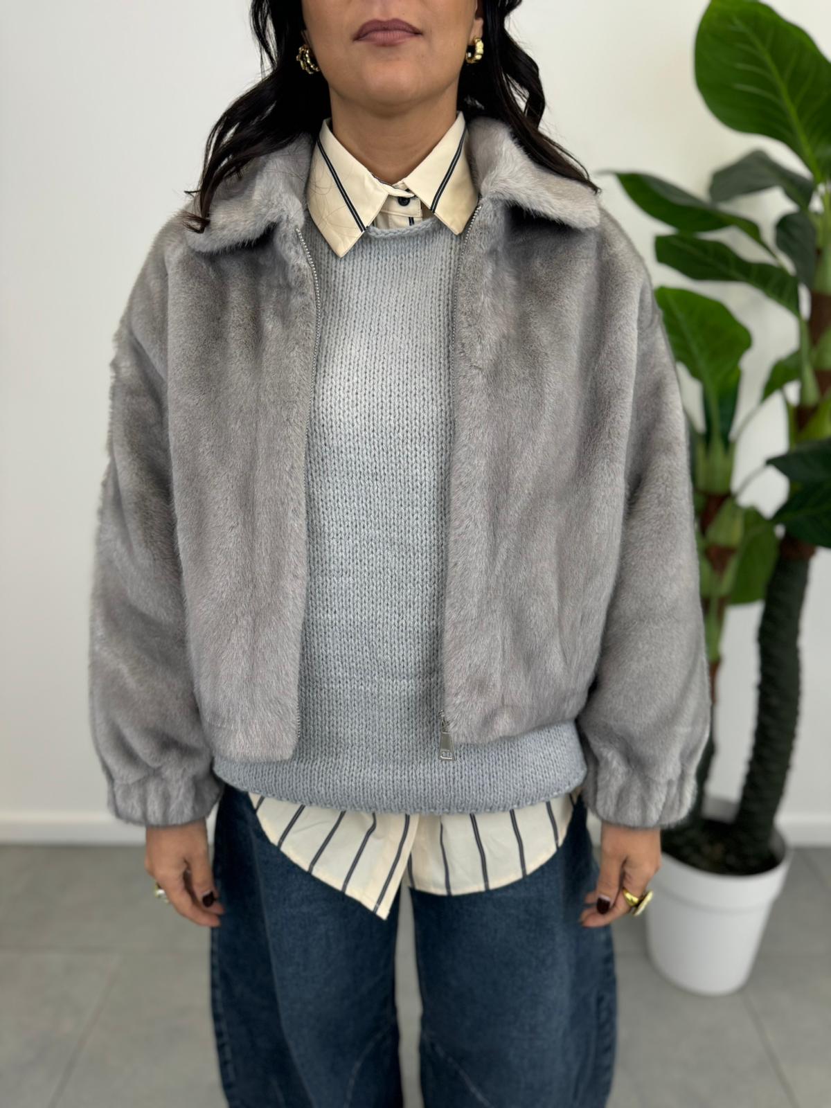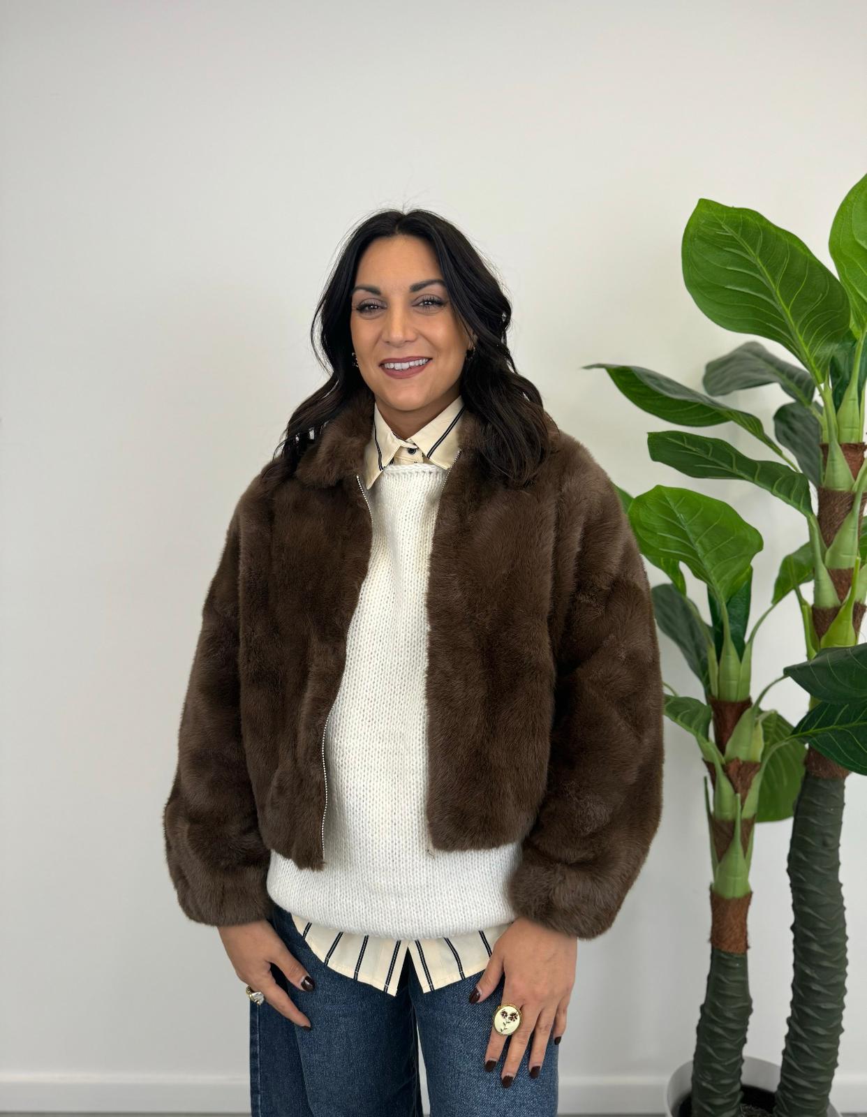 Eco pelliccia super morbida e calda, con tasche e colletto, vestibilità morbida e confortevole.