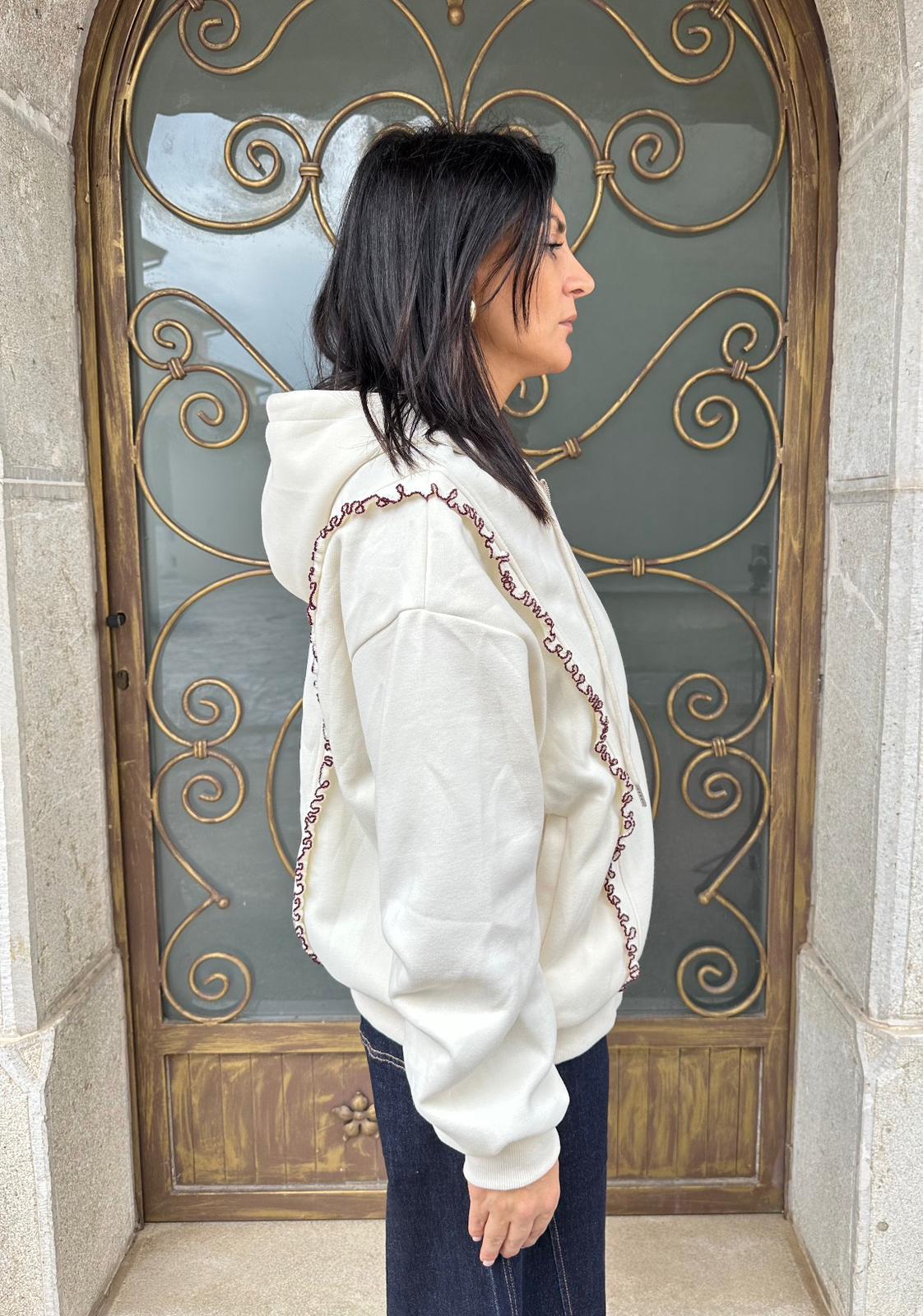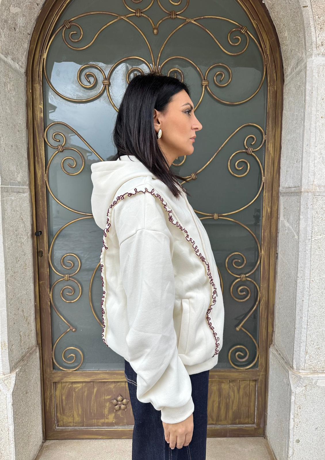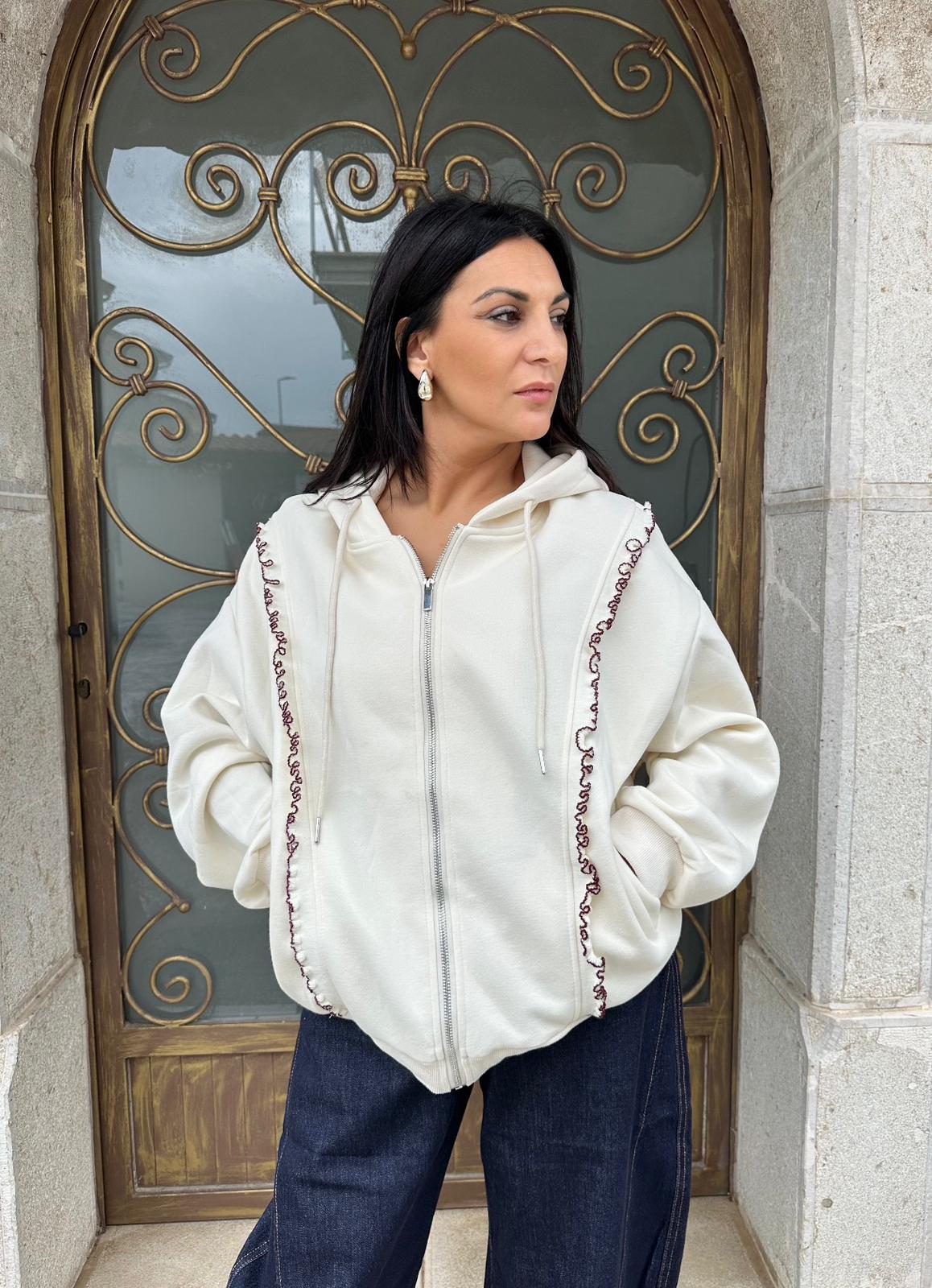 Felpa Con Cappuccio E Cerniera E Tasche Vestibilità Over E Piccole Rouge Sui Lati.