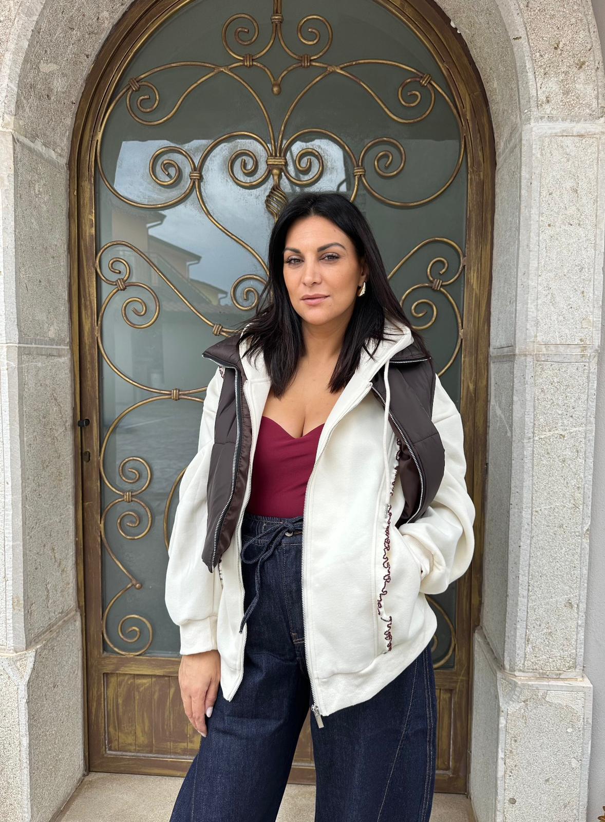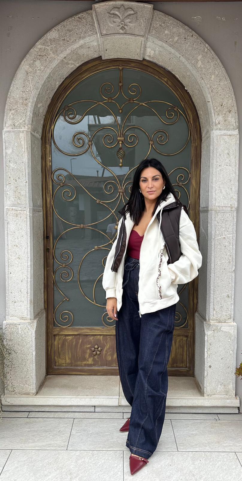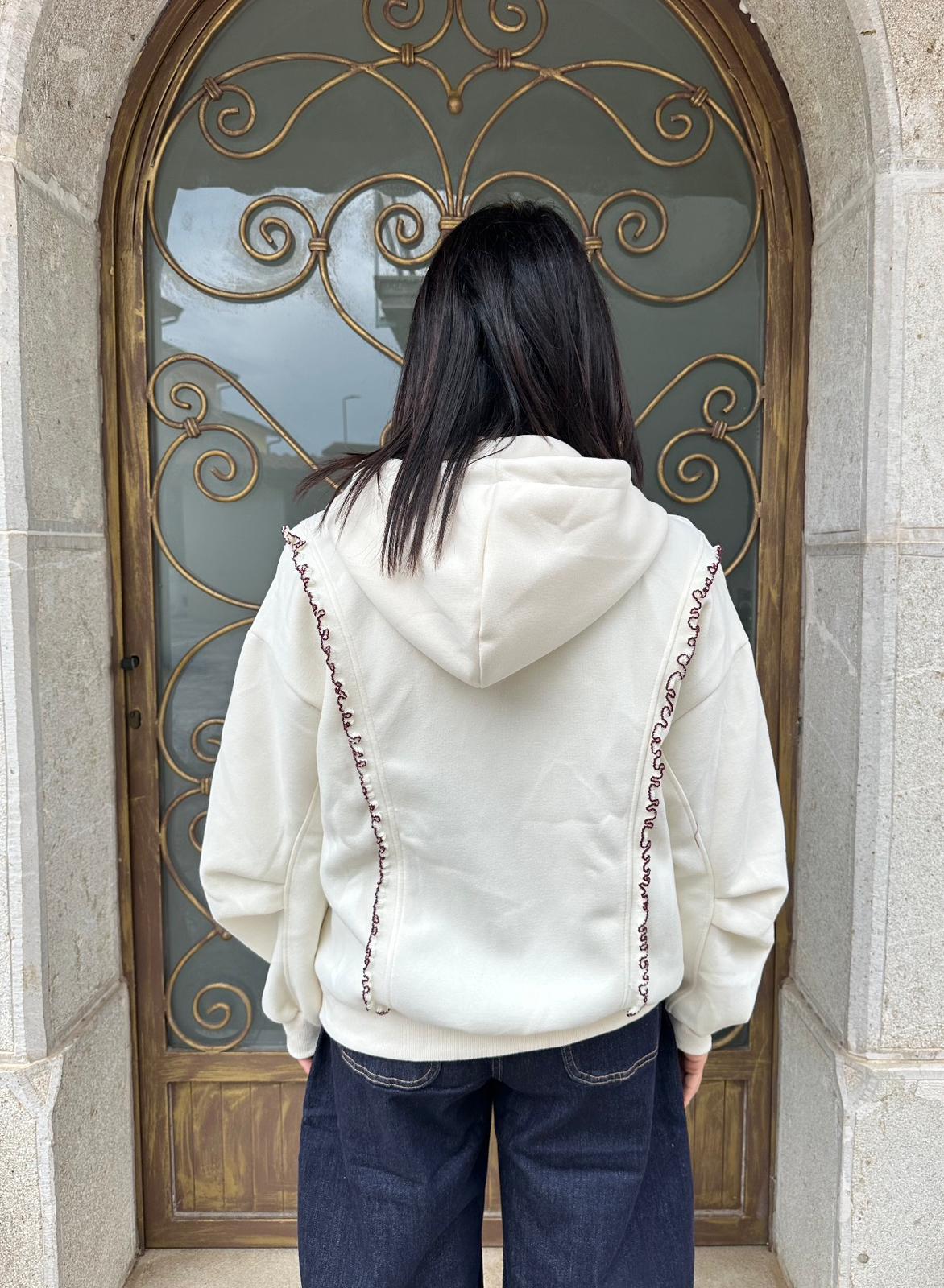 Felpa Con Cappuccio E Cerniera E Tasche Vestibilità Over E Piccole Rouge Sui Lati.