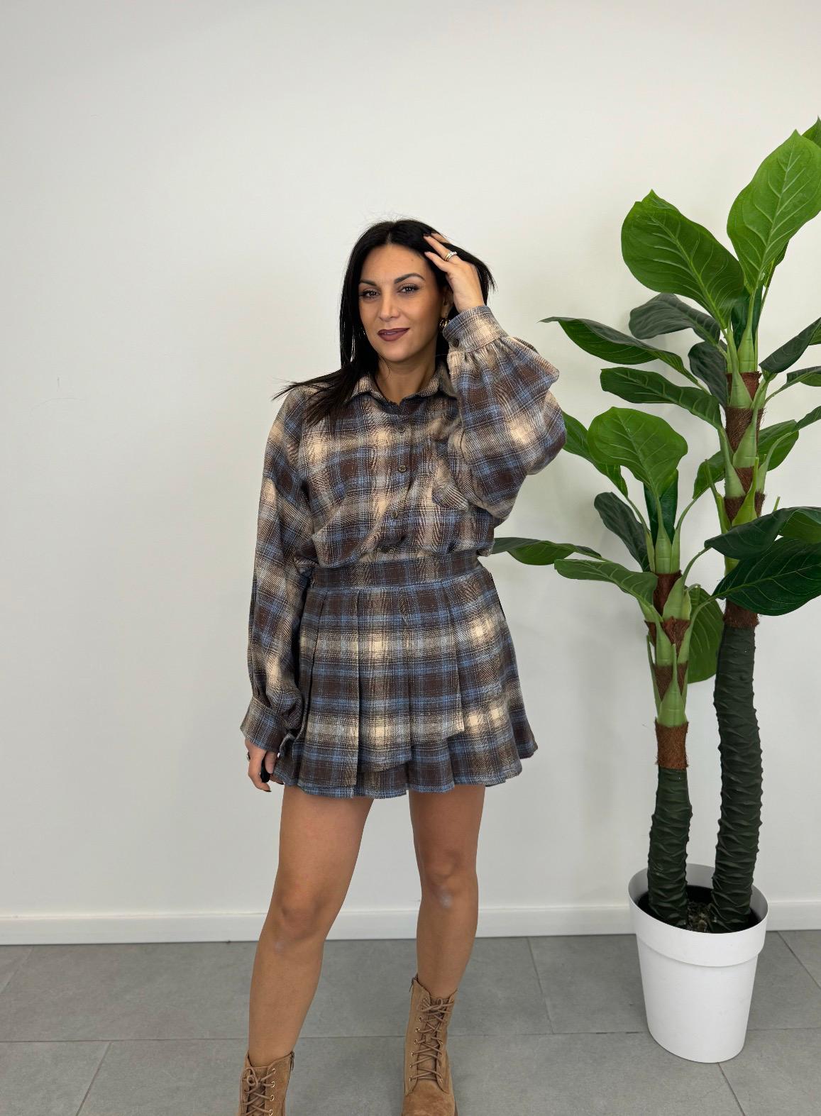 Una gonna a pieghe in flanella fantasia, con elastico in vita, versatile e comoda.