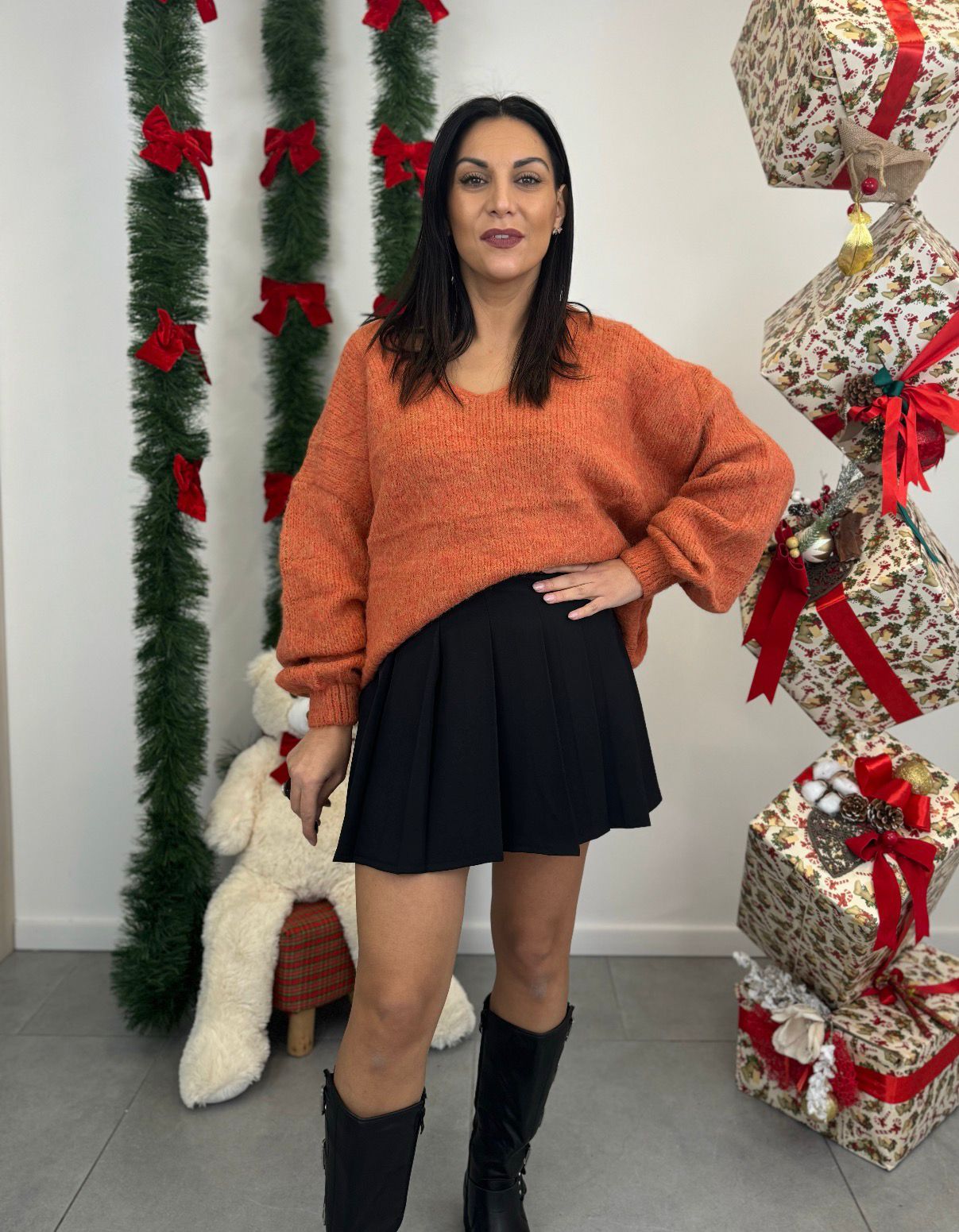 Una gonna a pieghe, con chiusura a zip sul retro, versatile e comoda.