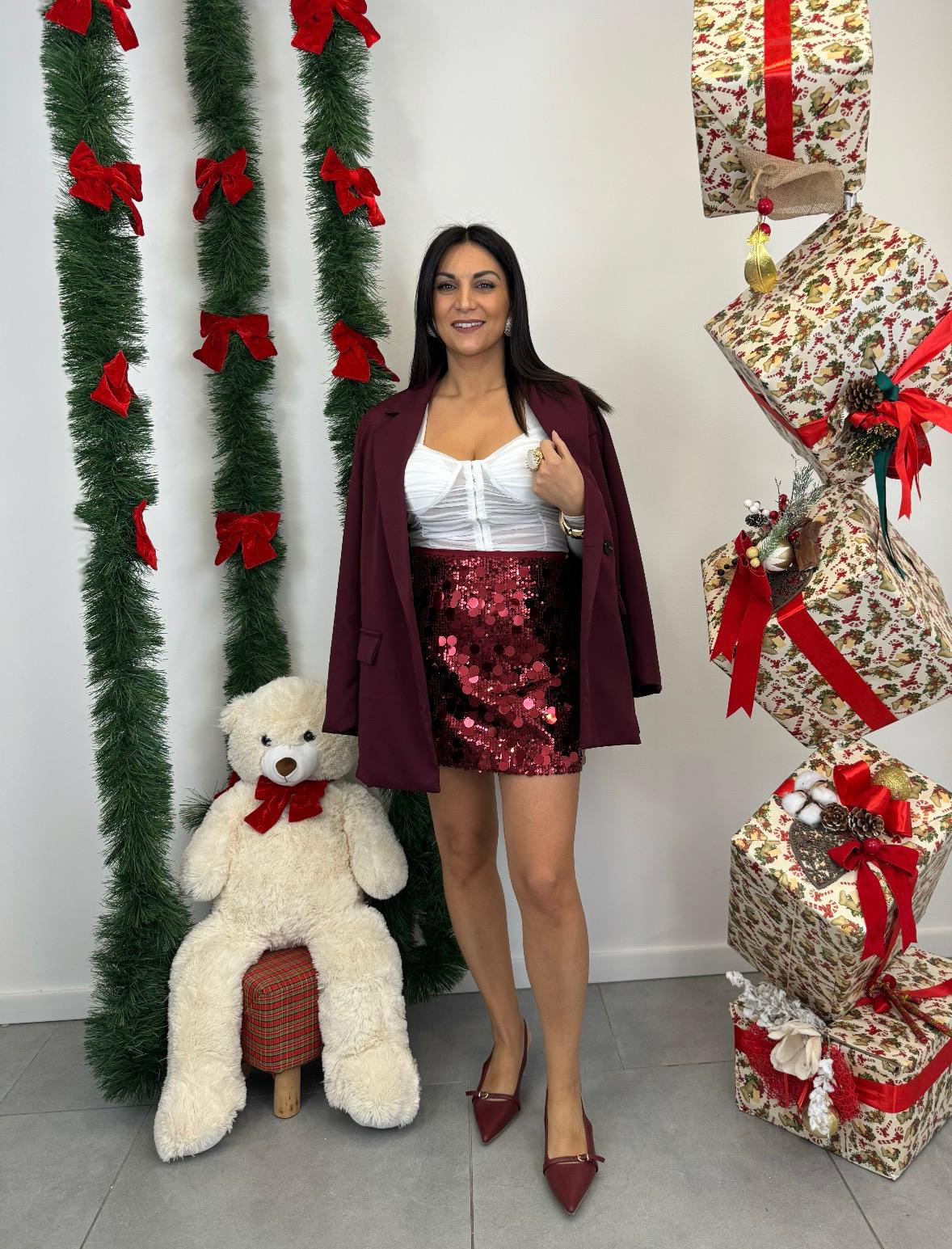 Gonna con pantaloncino interno e chiusura a zip, con micro e macro paillettes.
