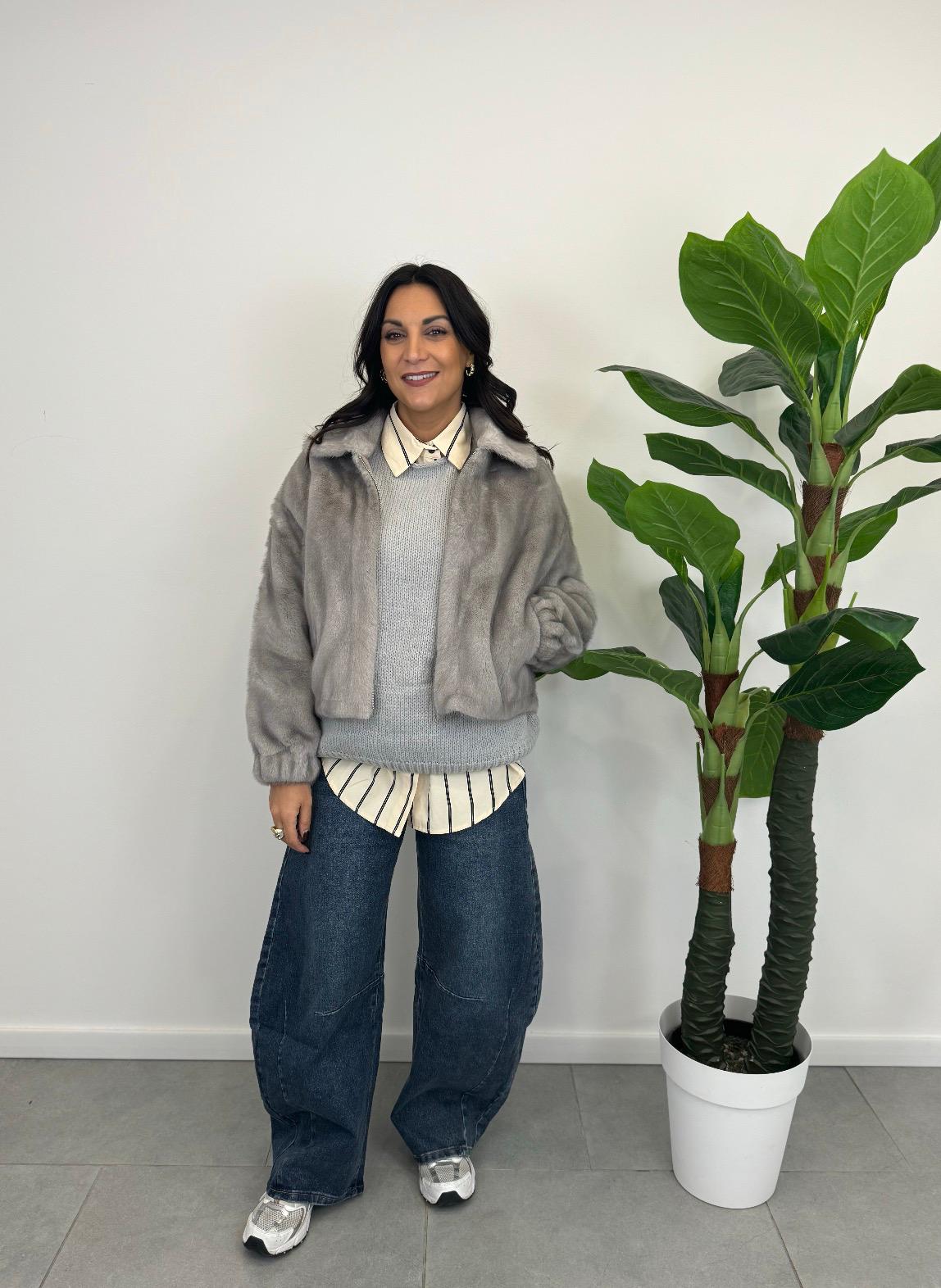 Il jeans balloon fit è un modello a vita alta, con gamba ampia e svasata, che crea una silhouette volumetrica e vintage.
