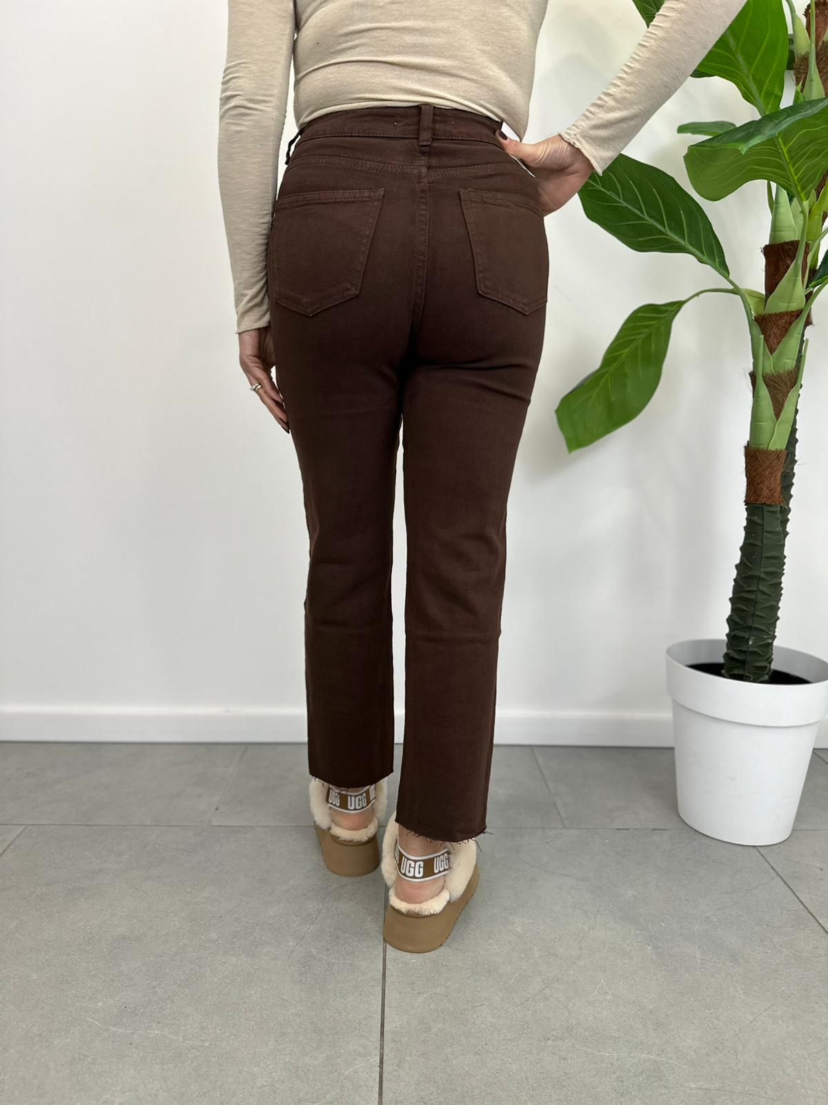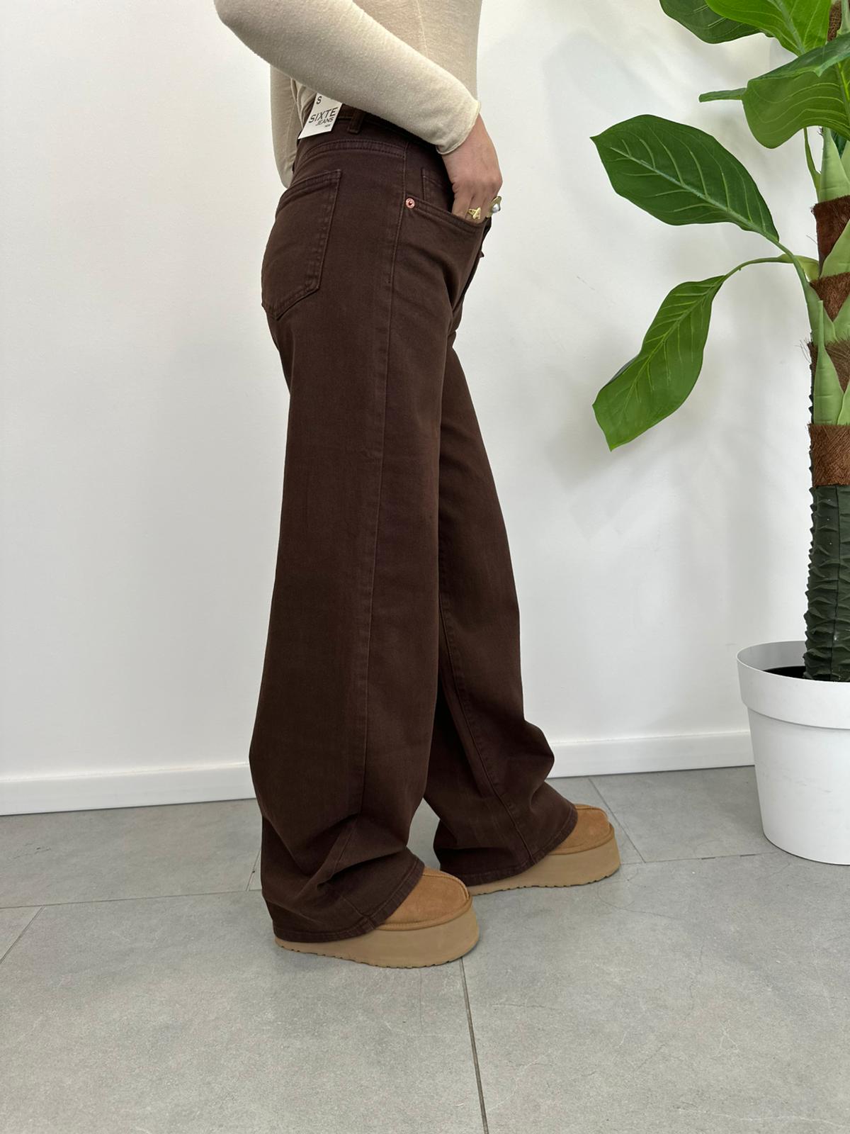 Jeans a palazzo elasticizzato marrone modello 5 tasche.