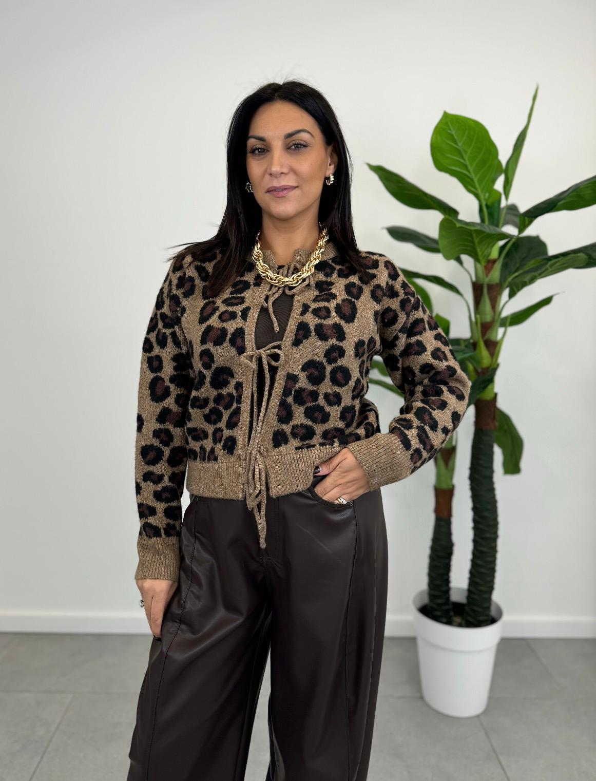 Maglia Maculata con chiusura a fiocchetto, morbida e super calda.