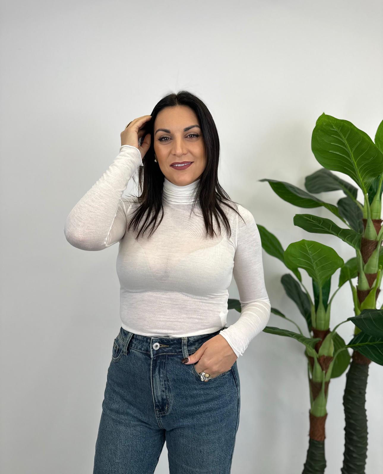 Maglia Maniche Lunghe Collo Alto in 80% Viscosa 9% Nylon 6% Elastomero 5% Cashmere.