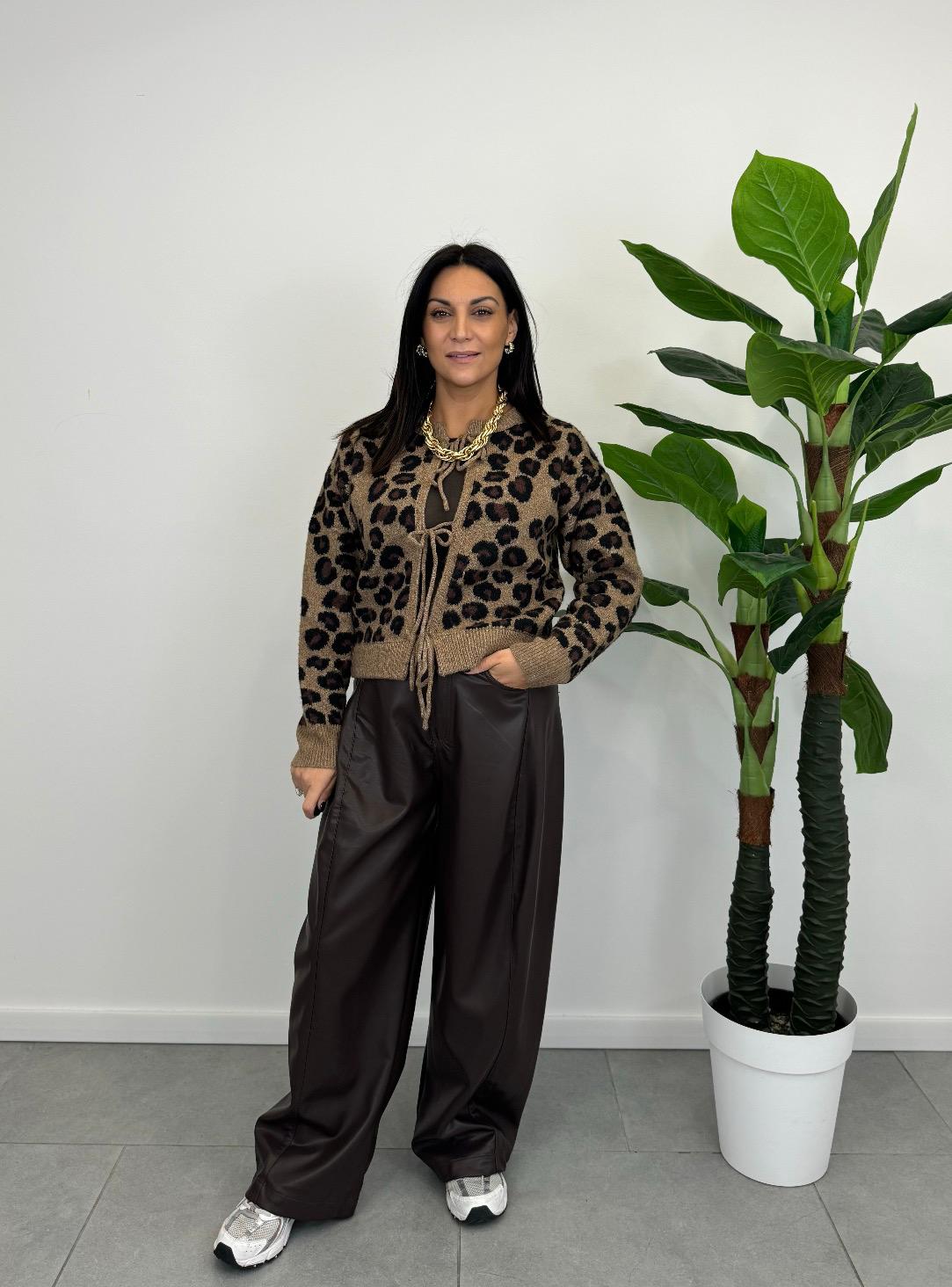 Pantalone in ecopelle, versatile, con tasche pratiche e stile moderno.