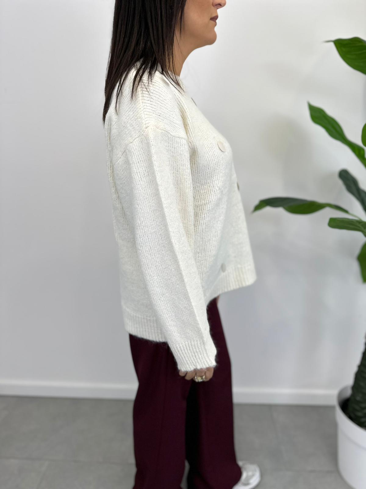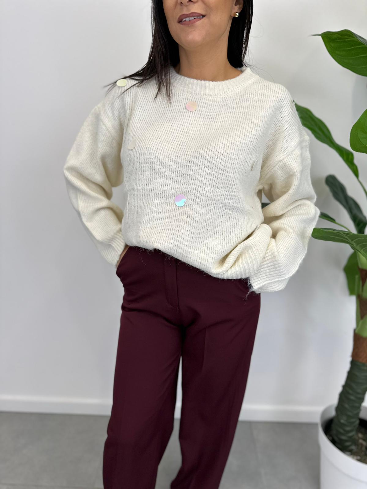 Un pullover elegante, caldo, con macro paillettes applicate, che aggiungono brillantezza e un tocco glamour al look.