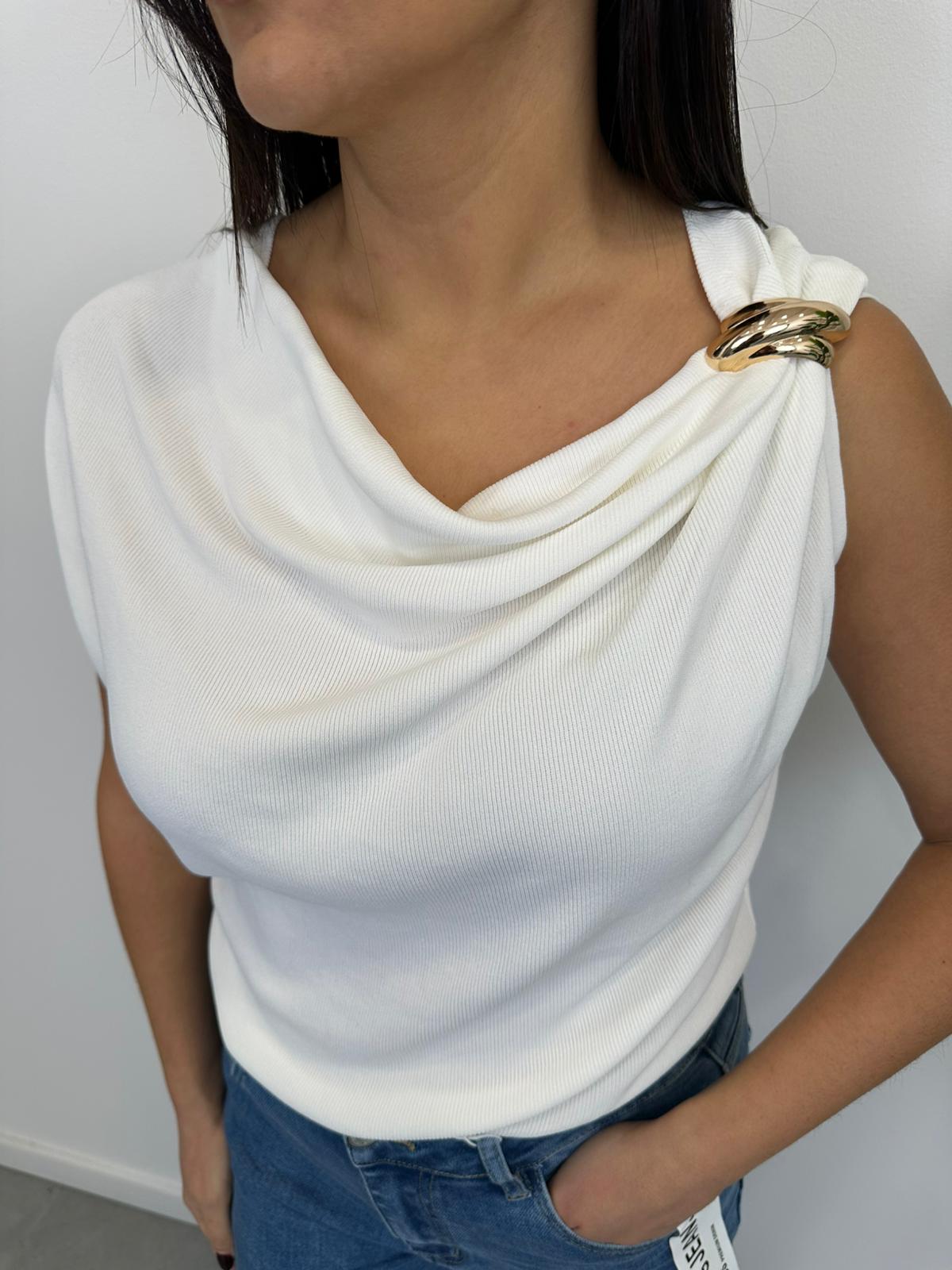 Top sotto giacca con scollo sciallato e drappeggio con dettaglio dorato, taglia unica.